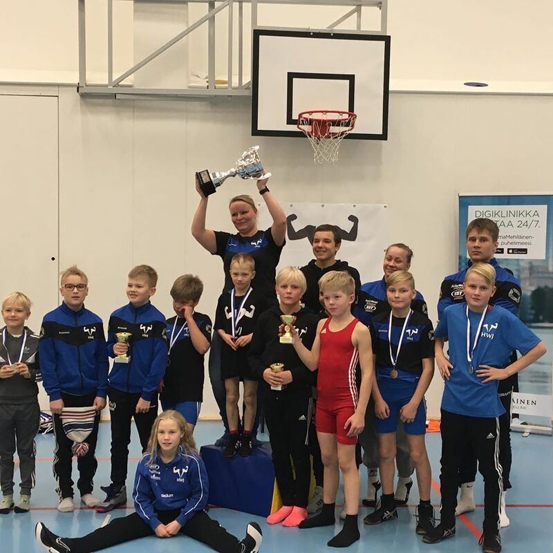 HWJ:n 10-v juhlakisoihin osallistui 136 painijaa 27 seurasta ja otteluita kertyi päivän aikana 191.Myös yleisöä huikeana kisapaikkana toimineelle Huhtasuon koululle kertyi runsaasti! Suuri kiitos kaikille osallistujille, teitte hienot kisat! HWJ:n edustajia oli mukana kisoissa 22 ja HWJ:n edustajille kertyi 64 matsia eli myös valmentajilla oli hieman kiire:) HWJ:n edustajien tulokset: Aloittelijat 22kg: 2. Sisu Rantonen, 6. Touko Pellinen Aloittelijat 25kg: 1. Kaapo Takkinen, 3. Lauri Leppänen Aloittelijat 30kg: 4. Roe Rajaniemi, 5. Niila Penttinen, 6. Eino Tommila Aloittelijat 37kg: 1. Niku Immonen, 4. Lenni Honkalahti, 7. Onni Salmela Aloittelijat 44kg: 3. Eemeli Puurunen, 4. Vilho Henttinen Tytöt 17v 31kg: 1. Rita Rantonen Tytöt 17v 52kg: 1. Sanni Sarkkinen Pojat 13v 32kg: 8. Lauri Vaaraniemi Pojat 13v 35kg: 1. Ramin Yousefi, 2. Elmeri Hyvönen Pojat 13v 37kg: 1. Onni Silvennoinen, 5. Henrik Hänninen Pojat 13v 41kg: 3. Taisto Riutta-aho Pojat 13v 62kg: 1. Antti Härkönen Pojat 17v 51kg: 3. Antti Härkönen Pojat 17v 80kg: 1. Jonni Sarkkinen HWJ voitti kisojen seurapisteet! Harjun Woima kiittää painiseuroja Ja nuoria taitavia painijoita. Kisoissa saatiin seurata hienoja otteluita koko päivän ajan! Kiitos meidän mahtavaa talkooporukka!! Yhteistyökumppanit js sponsorit #yitkeskisuomi #aalman #mehiläinenjyväskylä #sakketechoy #sokoshotelalexandra #tl-maint #autoasiseppälänautokulma #mattokymppi #valmetjyväskylä #keski #punnitsejasäästä #jesperjunior #dna #tiger #yle #jamk #normark #hongkong #keskimaa #clasohlsonpalokka #koas kuvat: Heikki Paju