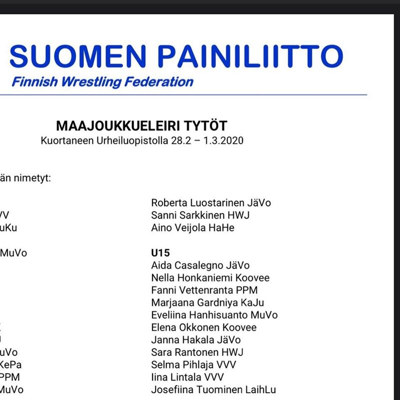 Tyttöjen painin maajoukkueleiritykseen Sannin kaveriksi nostettu Sara Harjun Woimasta