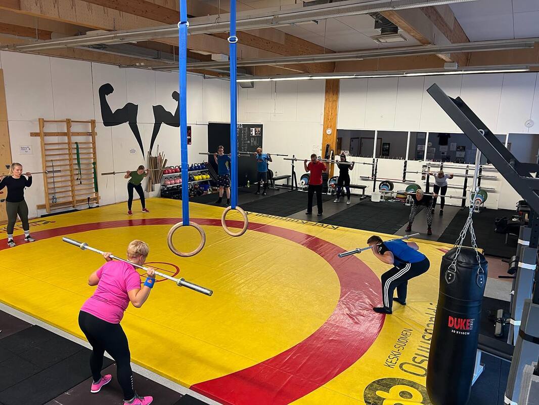 Aikuisten painonnostokoulussa oli tänään tupa täynnä. Mahtava nähdä kun lavat täynnä nostajia!