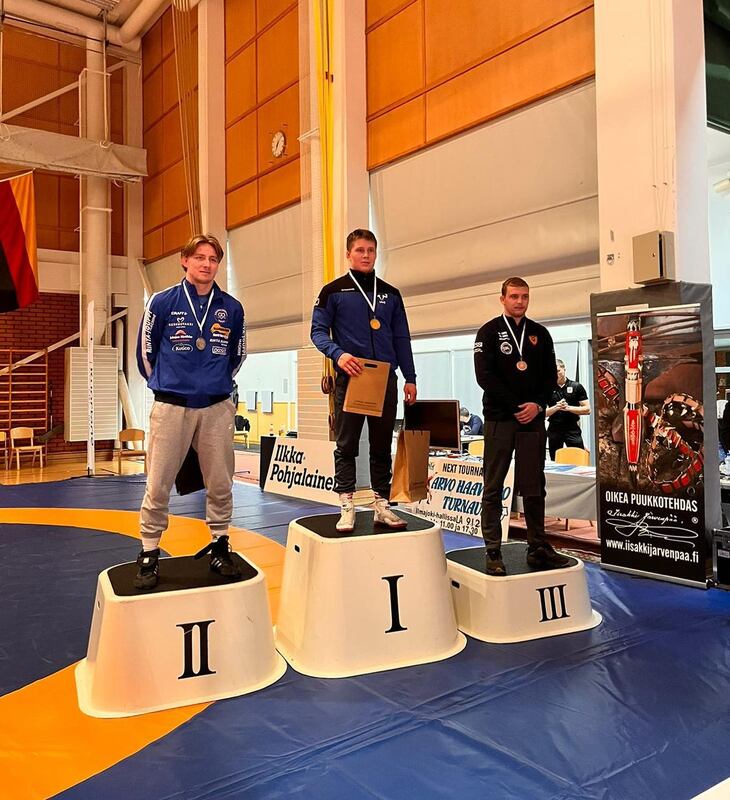 Olympiavoittaja Arvo Haaviston muistoturnaus oteltiin viikonloppuna Ilmajoella. HWJ:n Jonni Sarkkinen voitti painoluokan 82 kg mestaruuden puhtaasti neljällä otteluvoitolla. Avausottelussa Sarkkinen selätti Tanskan Marcel Heinin kolme sekuntia ennen ensimmäisen jakson päättymistä (aika 2.57), johtopisteiden ollessa siinä vaiheessa 6-1. Toisella kierroksella kaatui Liettuan Arsenas Stankevicius ylivoimaisella pistevoitolla (9-0) ajassa 4.44. Semifinaalissa kaatui Ilmajoen Otto Ketonen pistein 3-1 ja finaalissa Kooveen Roni Purolainen pistein 4-1. |
