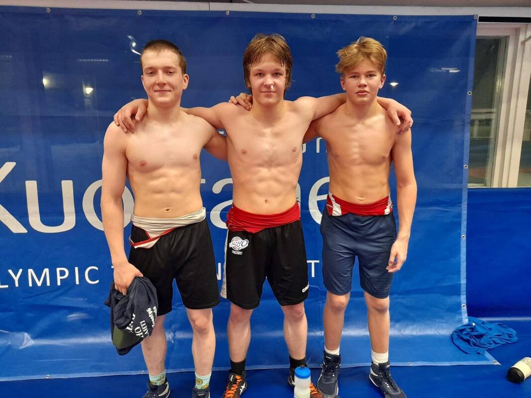HWJ:n Onni Silvennoinen Kuortaneella Himberg-haastajaleirillä. Samaan kuvaan pääsi myös Suolahden Urhot Joni Pitkänen ja Kasperi Kankkunen.