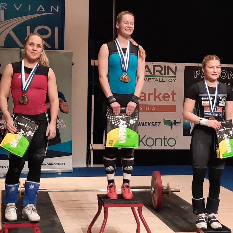 Marju Kymäläiselle kultaa, hopeaa ja pronssia painonnoston SM-kisoista! Kymäläinen voitti tempauksen kultaa tuloksella 73 kg työnnön pronssia 82 kilolla ja yhteistuloksen hopeaa 155 kilolla naisten 55kg sarjassa.
