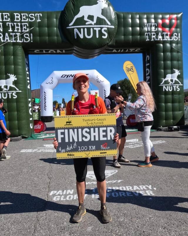Sanna Penttinen edusti Harjun Woimaa Nuts YlläsPallas-polkujuoksussa, ollen naisten 100km matkan 10.