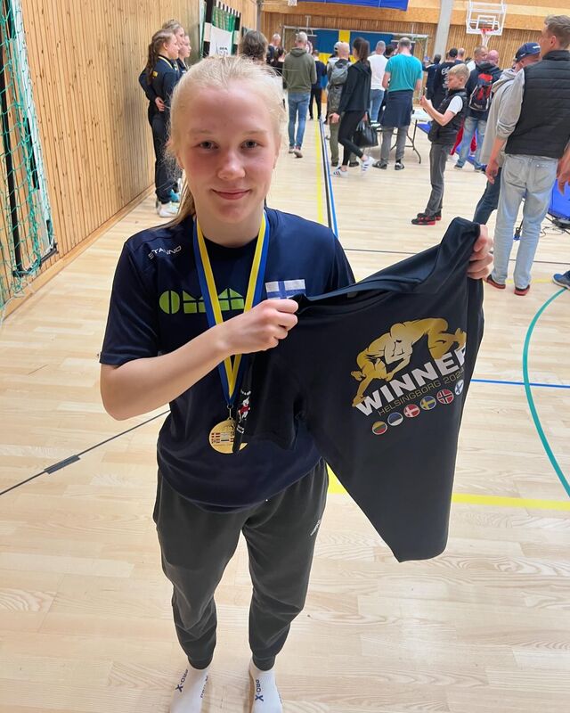 Harjun Woima Jyväskylän Ritan Rantonen paini lauantaina 4.5.2024 Ruotsin Helsingborgissa Pohjoismaiden mestariksi naispainin alle 17 vuotiaiden 49kg sarjassa. Ritan lohkon ensimmäisessä ottelussa Rita voitti ylivoimaisella (12-2) pistevoitolla Ruotsin Sally Hammarbäckin. Lohkovoitto varmistui perusvarmalla painilla 3-1 voitolla Norjan Aida Lachinovasta. Finaalissa vastaan tuli Ruotsin Emmy Nerell, jonka Rita voitto pistein 8-0. |