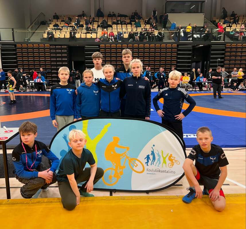 HWJ 9+1 painijan Woimin Koululiikuntaliiton vapaapainin mestaruuskisoissa Raumalla. Tiukkoja otteluita, riemukkaita voittoja ja kirveleviä tappiota…siis urheilua parhaimmillaan. Painijat edustaa KLL-kisoissa kuntaa/kaupunkia, jossa käy koulua. Joten KoKin Ella edustaa Jyväskylää, koska opiskelee Schildtin lukiota. Pojat 7-10v 36kg: 9. Eetu Mähönen, 11. Miska Poutamo Tytöt 11-14v: Iida Keränen Pojat 11-13v 33kg: Sisu Rantonen Pojat 11-13v 40kg: 13. Otso Mäkelä, 14. Kaapo Takkinen Pojat 14-16v 70kg: 7. Eemeli Puurunen, 10. Eetu Pirinen Tytöt 15-20v 52kg: Rita Rantonen Tytöt 15-20v 59kg: Ella Forsell |